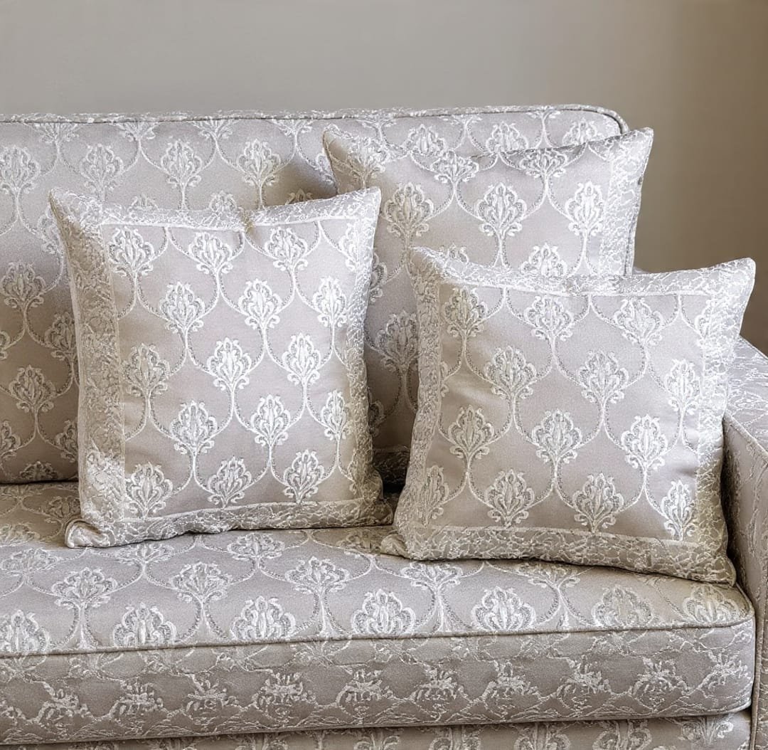 Elevate your home décor with the timeless elegance of our Decor By Mom Premium Jacquard Cushion Covers. Designed in a soothing beige-silver tone, these covers feature rich floral jacquard patterns that bring a luxurious and graceful charm to any room. The shimmering woven texture adds depth, sophistication, and a plush feel that instantly enhances your sofa, bed, or lounge seating.